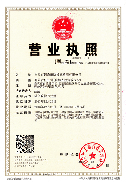 您好!歡迎光臨自貢市鈺宏消防設(shè)施檢測有限公司,我們竭誠為您服務!